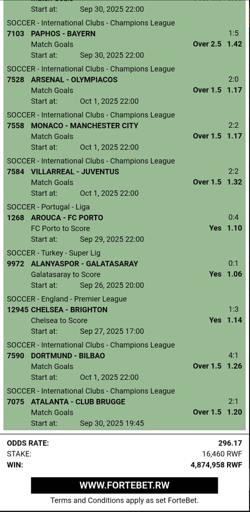 Ahanini yari yizeye ko “ikipe zinjinya igitego”, hamwe na “over 1.5” ndetse no gutsinda kwa Manchester City maze biraba!