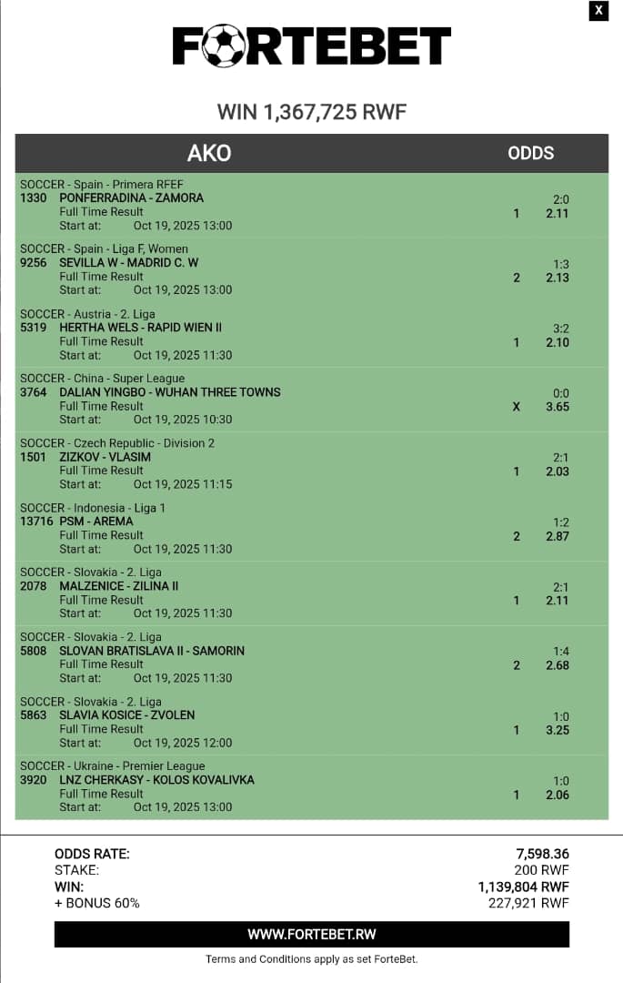 Uru sirwo rugero rw’umunyamahirwe wiyizeye bihagije? Uyu munyamahirwe yashoye 450,000 FRW ku mikino yari...