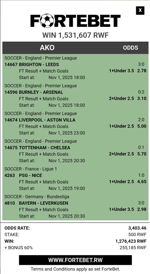Ku biceri 200 frw yatsindiye arenga miliyoni na Fortebet