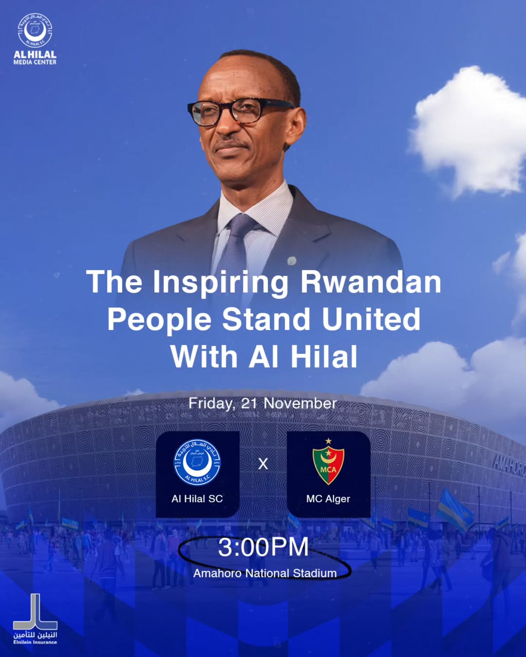 Yakomeje igira iti: “Ishusho nziza y’uyu muryango mwiza tuyitegereje ku wa Gatanu nimugoroba, yuzuza Stade Amahoro i Kigali mudutera inkunga mu mukino uzahuza Al Hilal na MC Alger.”