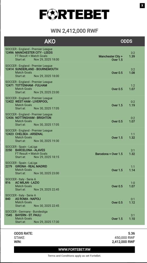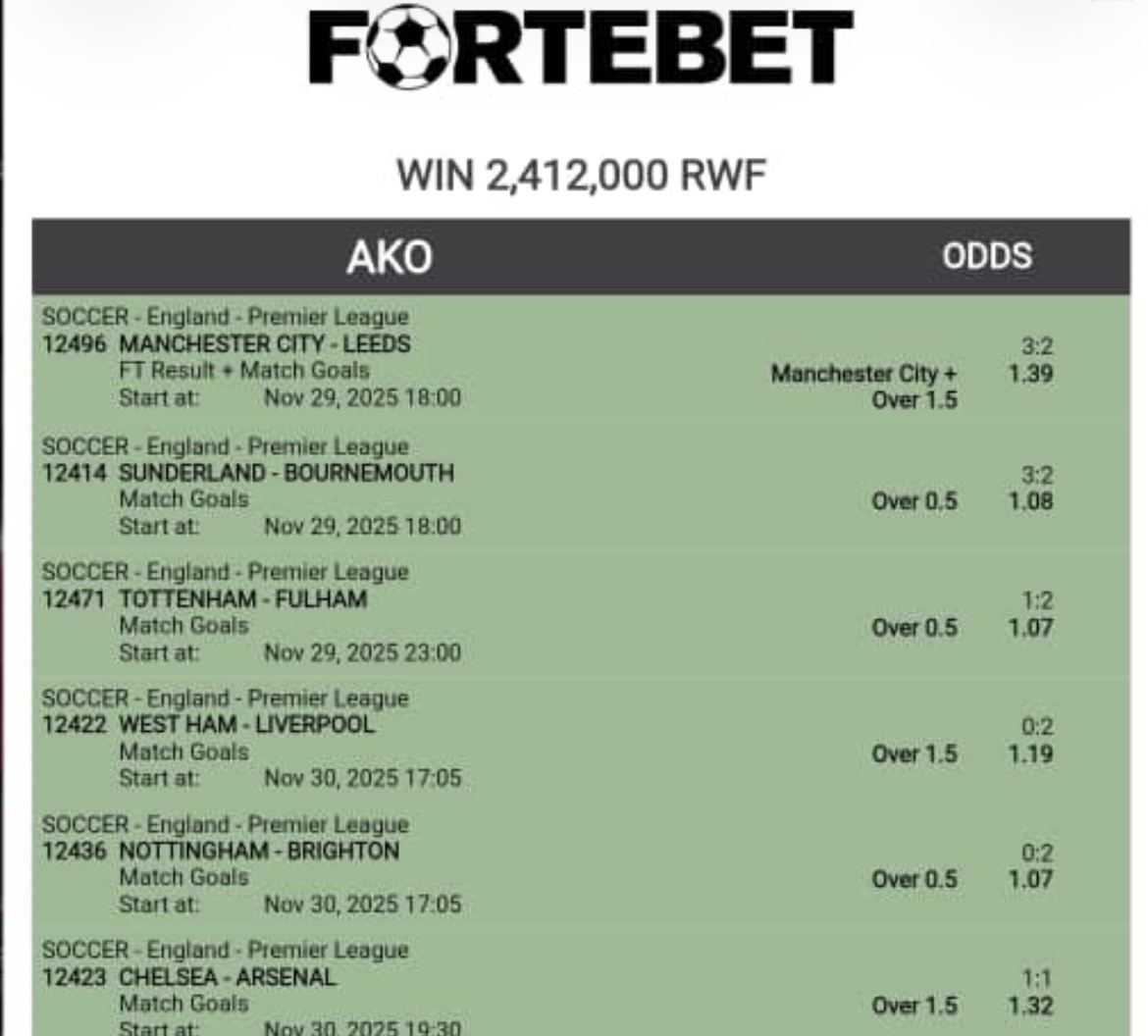 Umunyamahirwe yateze 200 frw ku ‘gice cy’umukino kibonekamo ibitego byinshi’ atsindira arenga miliyoni ebyiri