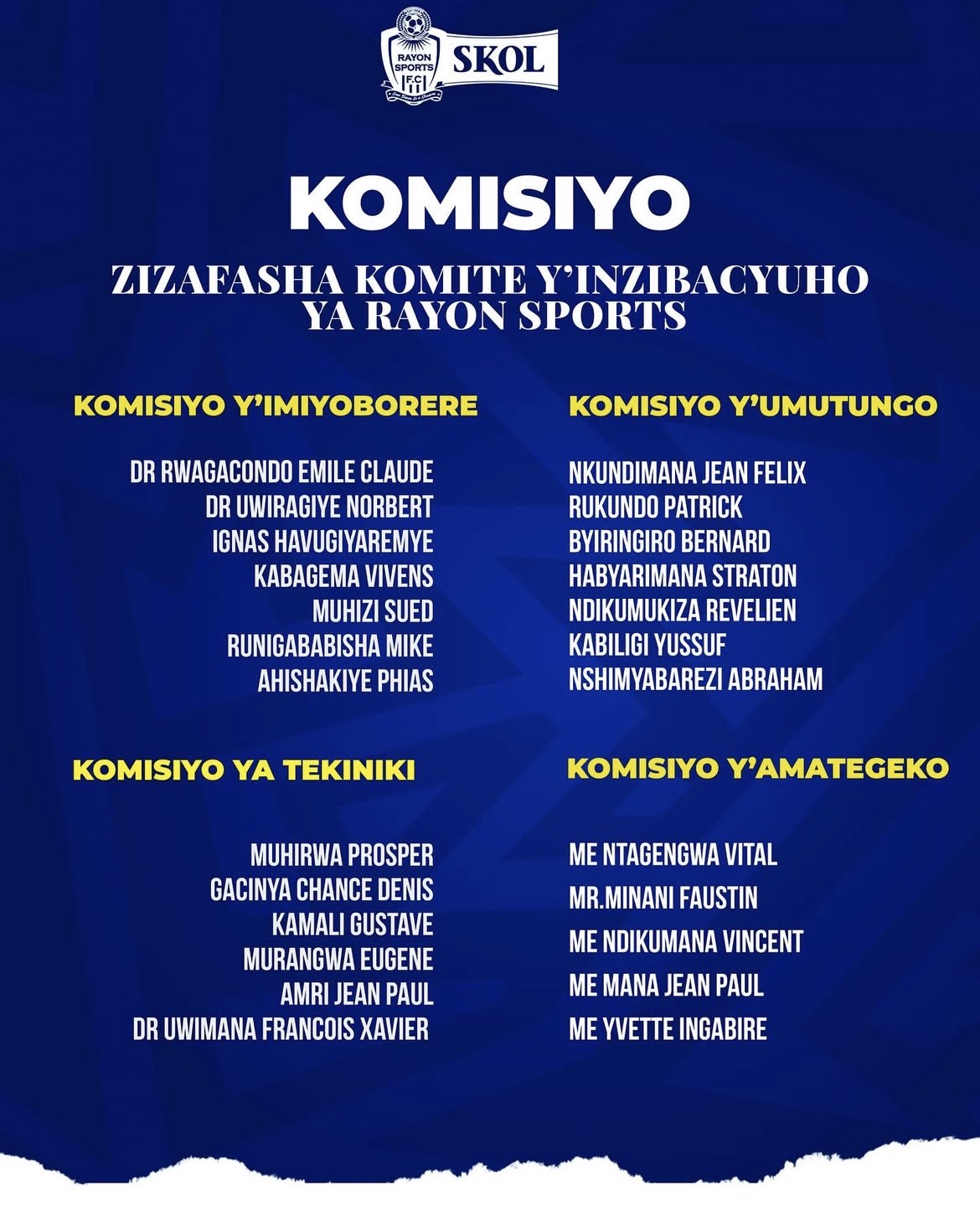 5 bagize Komite y’Inziba cyuho ya Rayon Sports mu mezi 3 ari imbere.