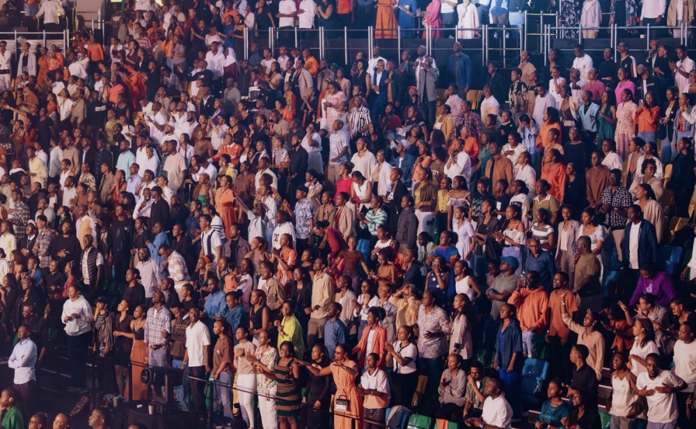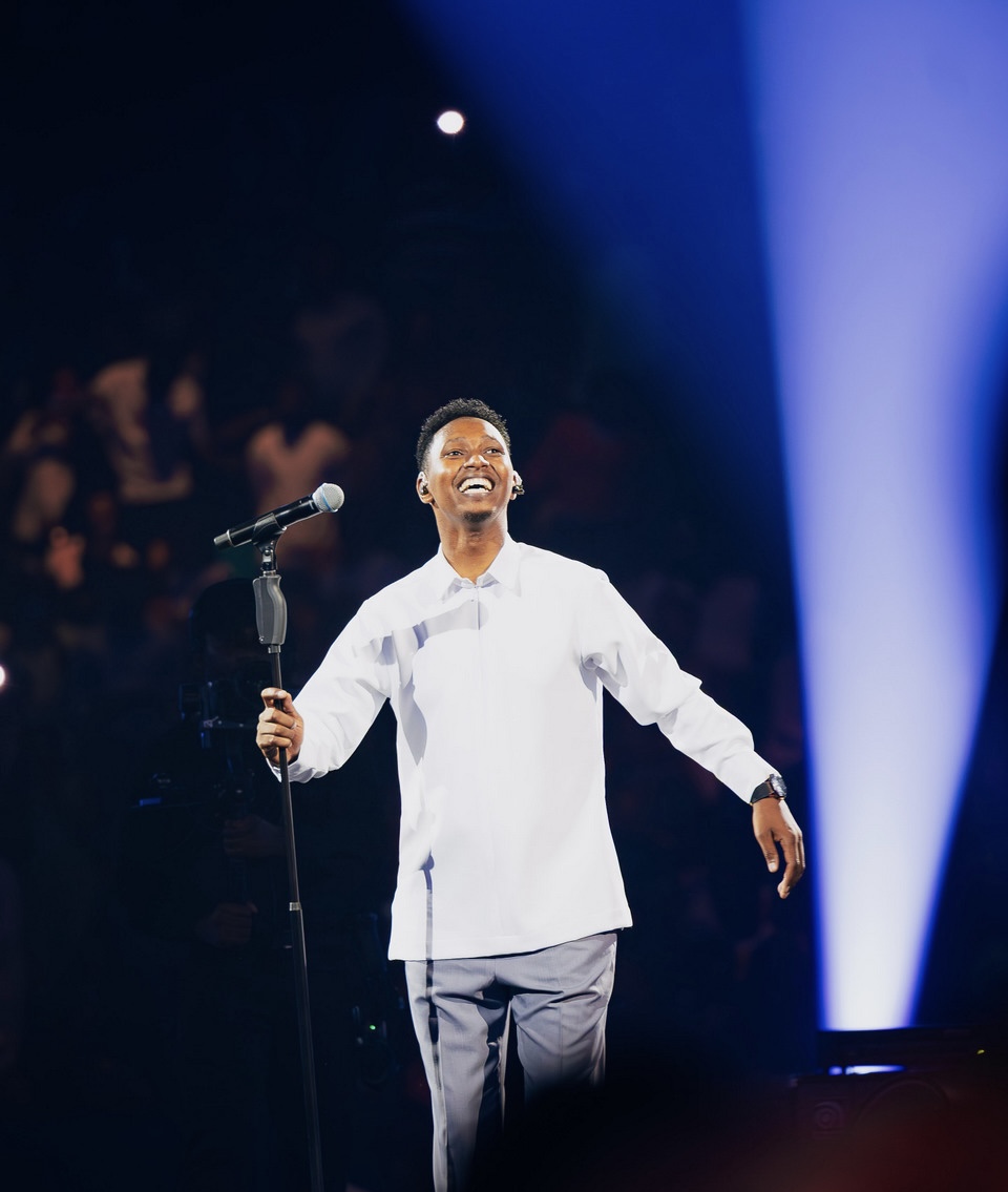 Israel Mbonyi yageze ku rubyiniro saa moya n’iminota 46 z’ijoro, atangirira ku ndirimbo “Uri Yaaa”, ahita yakiranwa urugwiro n’imbaga yari yuzuye BK Arena. Ku ndirimbo ya kabiri “Yaratwimanye”, abitabiriye bahagurutse bose bafatanya na we kuyiririmba ijambo ku rindi, bigaragaza urukundo n’igihe kinini bamaze bakurikirana umuziki we.