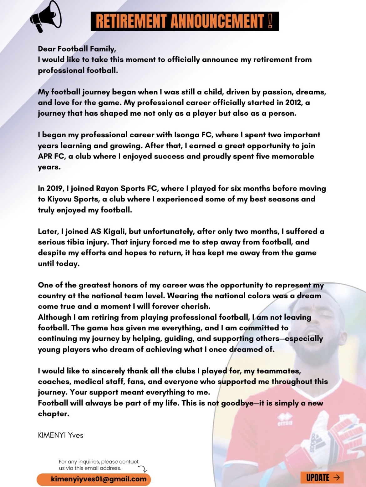 Kimenyi Yves yasezeye ruhago nyuma y’imyaka 3 adakina