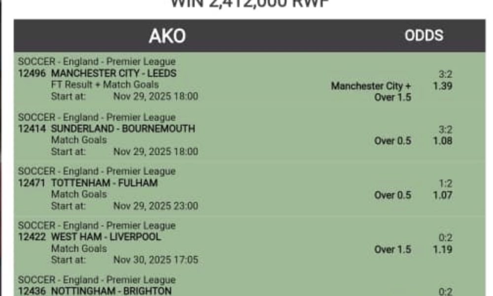 / 2 months agoUmunyamahirwe yateze 200 frw ku ‘gice cy’umukino kibonekamo ibitego byinshi’ atsindira arenga miliyoni ebyiri
